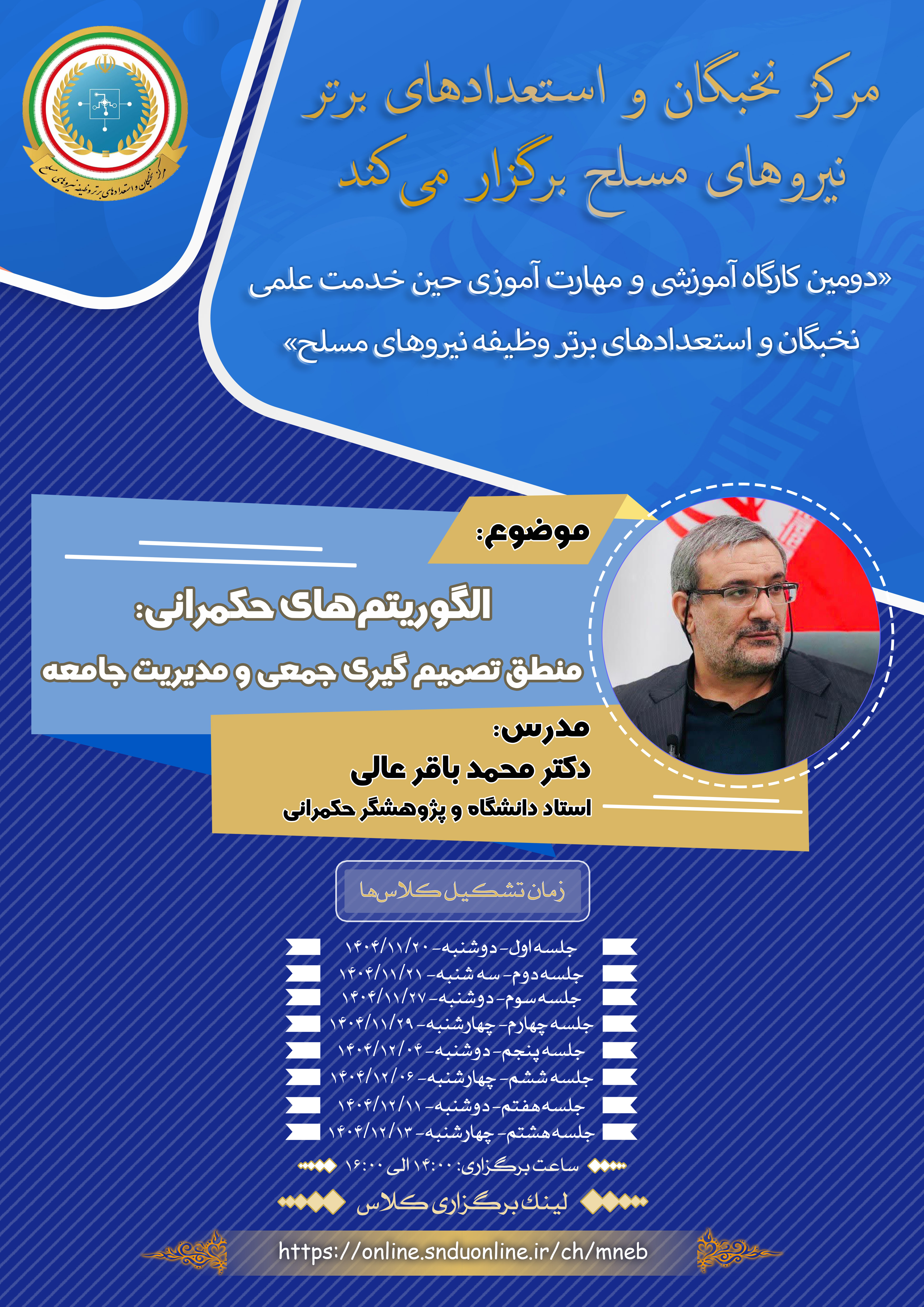 شیوه برگزاری: آنلاین https://online.snduonline.ir/ch/mneb